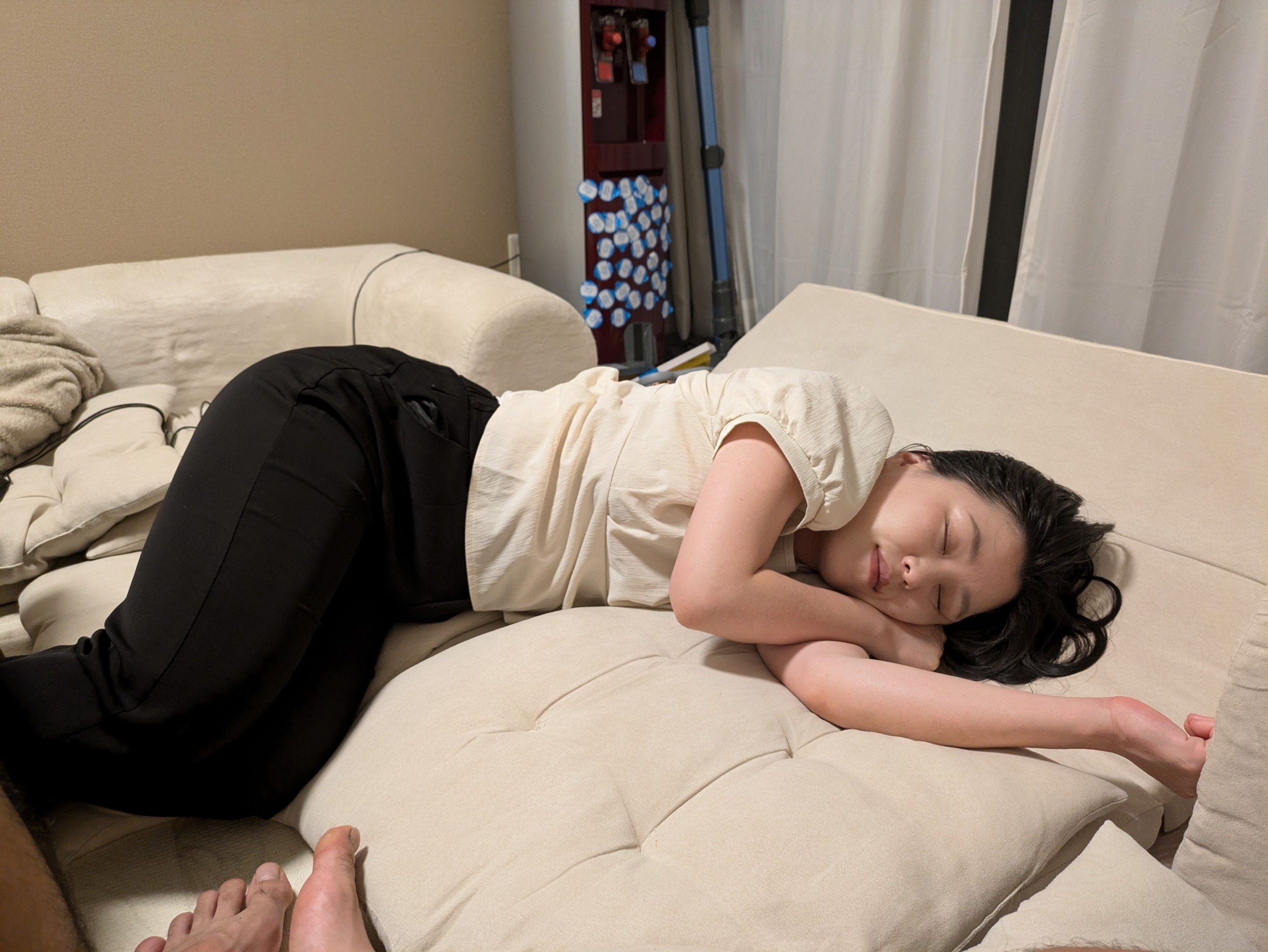 仕事から帰って来て疲れているのか横たわってそのまま寝てしまったり